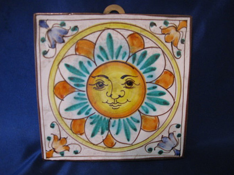Add a touch of Italian charm to your home with our exquisite Hand-Painted Italian Tile. Individually crafted by a small family factory in Sicily, this wall tile features striking Mediterranean Colours and Warm Golden Hand-Painted Sun. Hand made from authentic Italian Terracotta vs. Industrial Manufactured tile, these tiles are also known as First Stones and inspired by 16th Century Italian traditions of placing stones on walls of new homes to assure blessings and prosperity. A perfect way to bring the warmth of Italy into your home.