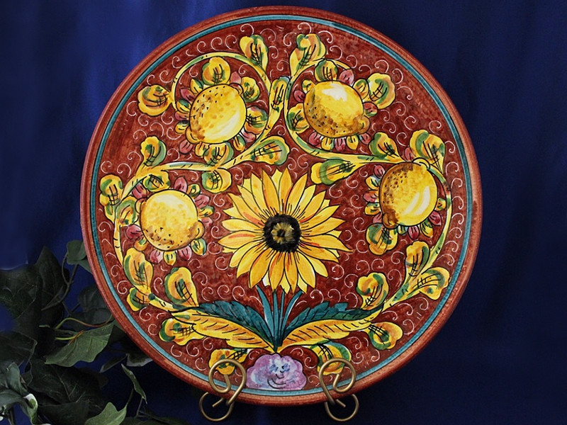 Loading... Please wait...A blend of Tuscan tradition and sheer creativity, this Tuscan Sunflower serving platter is exclusively hand-decorated and the ultimate Italian touch for your home. Adorned in fresh Italian lemons and a large Tuscan sunflower, this platter is large enough to hold a Chicken, Ham, Roast or Great for Entertaining or as a decorative Italian Art Plate.